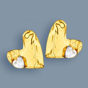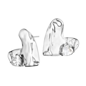 SK139 Σκουλαρίκια χειροποίητες καρδιές, ατσάλι με κεντρικό ζιργκον!