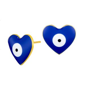 SK136 Σκουλαρίκια επιχρυσωμένο ασήμι 925, μπλε καρδούλα με μάτι και σμάλτο!