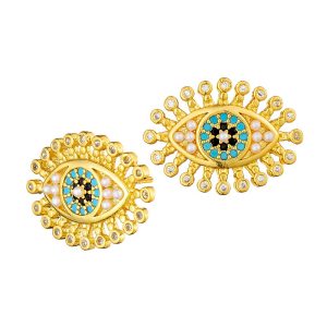 SK137 Σκουλαρίκια επιχρυσωμένο ασήμι 925, μάτι με ζιργκονάκια & περλίτσες!