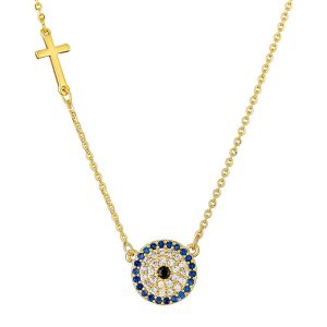 NC113 Best seller ατσάλινο κολιέ ματάκι με διακοσμητικό σταυρουδάκι!