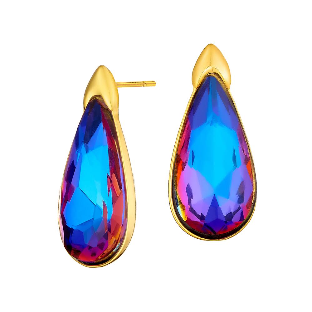 SK130 Λαμπερά σκουλαρίκια με βάση ατσάλι χρυσό & πολύχρωμο κρύσταλλο!