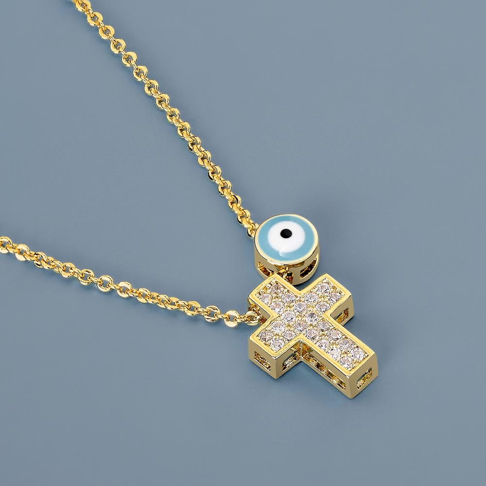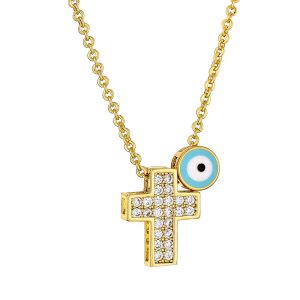 NC109 Best seller γυναικείο σταυρουδάκι από ατσάλι, στολισμένο με ζιργκονάκια & ματάκι!