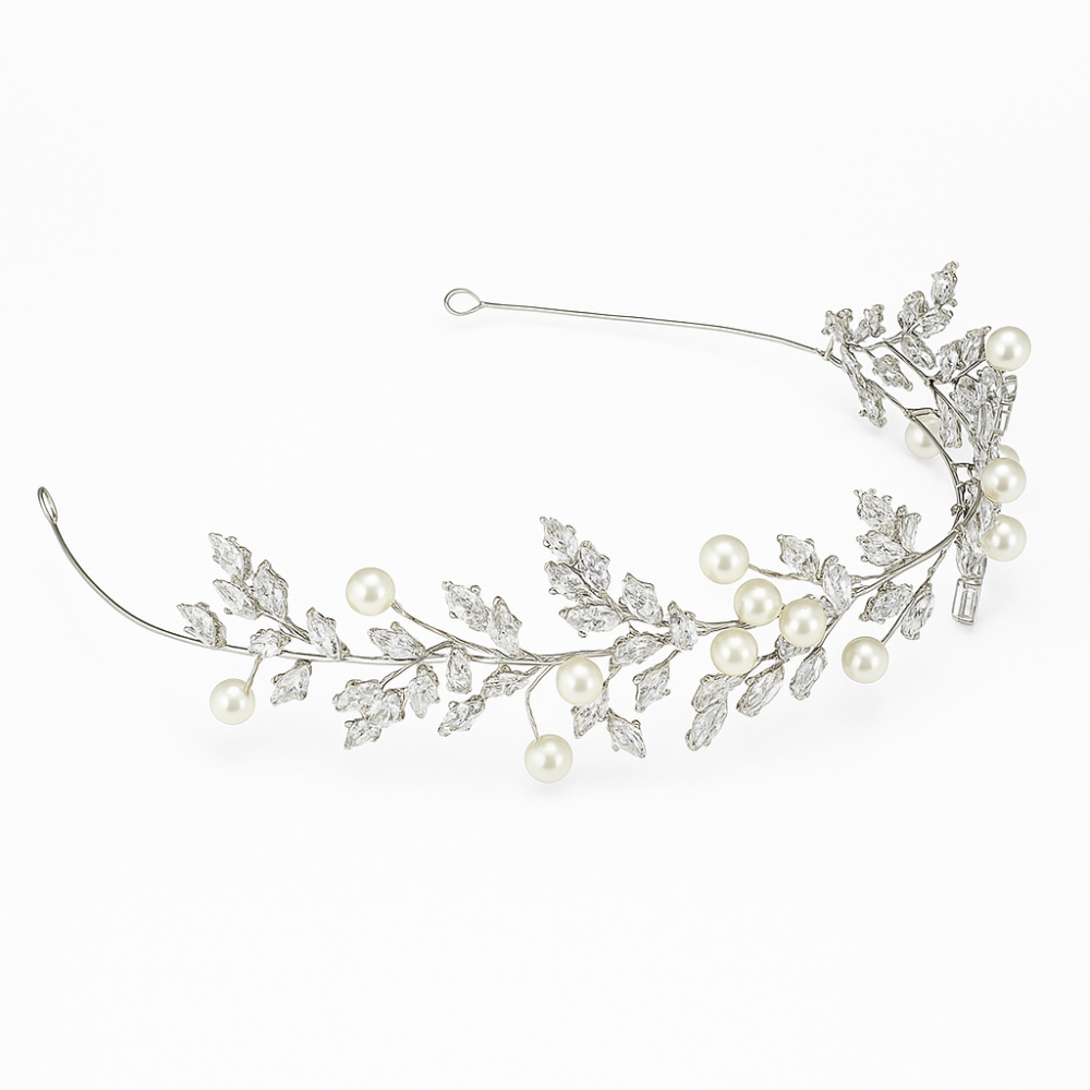 WD110 Στέκα στολισμένη με ζιργκόν & πέρλες , επιπλατινομένη!